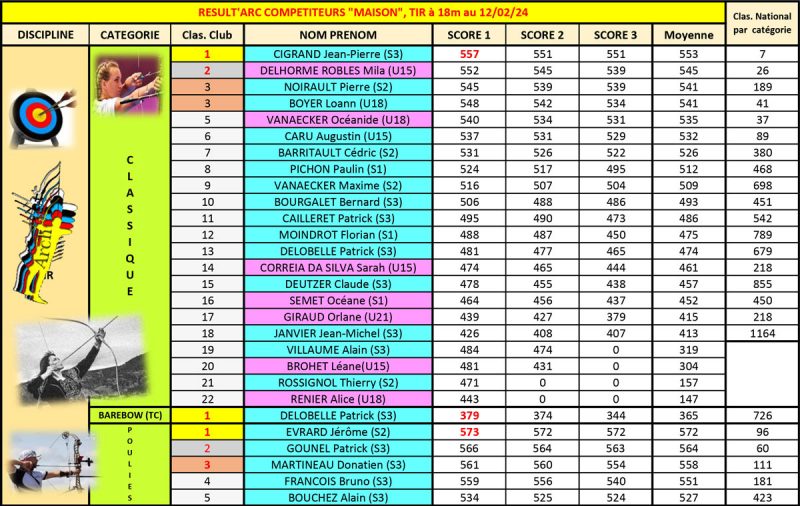Championnat régional tir à 18m 10 et 11 février 2024