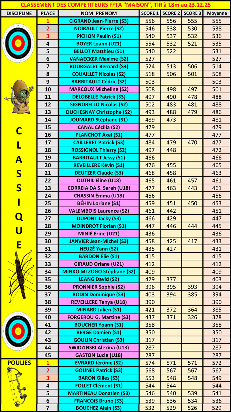 Jérôme 557 pts (3ème) – 563 pts (2ème tir) – 562 pts (3ème tir)